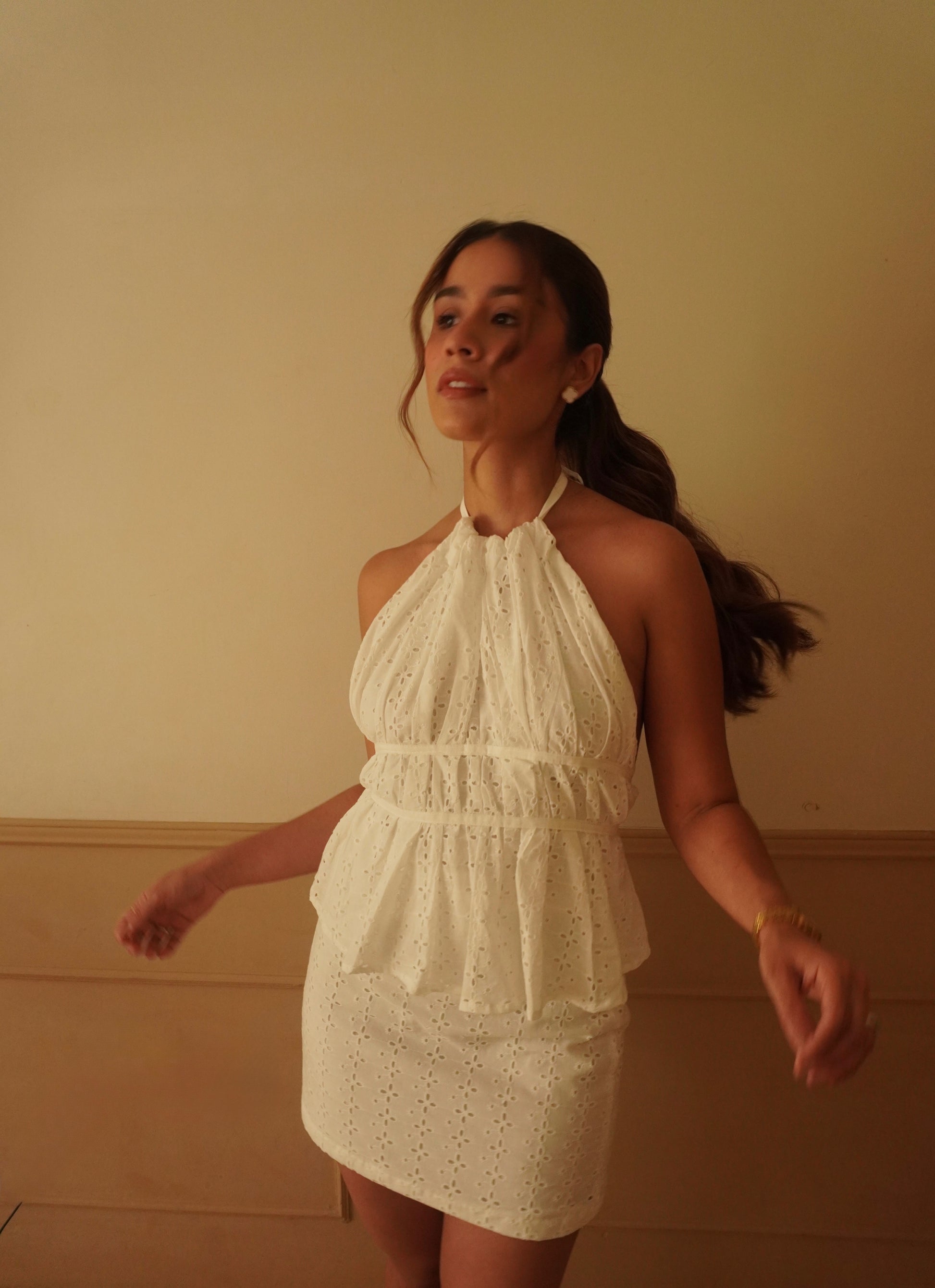 Inspirado en la esencia romántica de una de las calles más emblemáticas, este set en ojalillo es pura feminidad con un aire moderno. El top halter de espalda descubierta se ajusta delicadamente a la silueta, mientras la falda forrada con cremallera realza el movimiento ligero y sofisticado. Un conjunto pensado para nuestras girls que conquistan la ciudad con suavidad, dejando huella en cada rincón.
