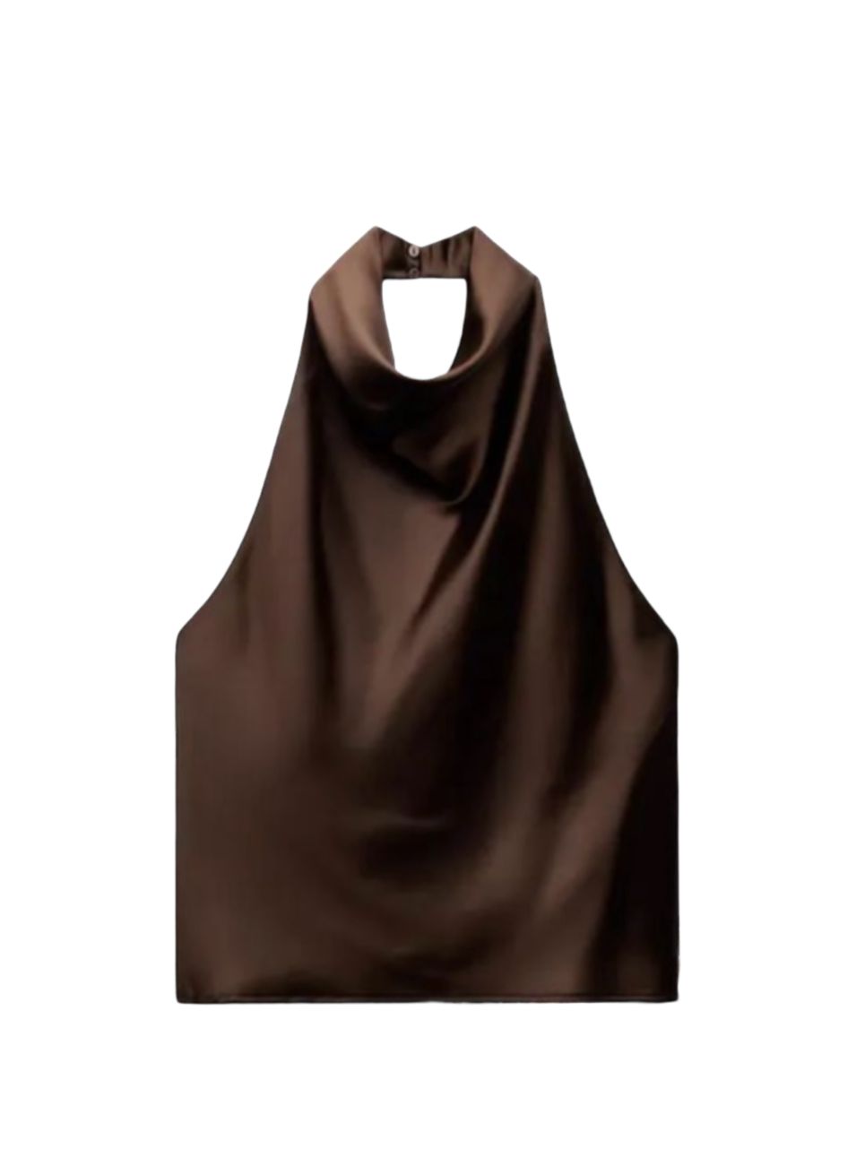 Top en seda de textura fluida y caída suave, con espalda descubierta.